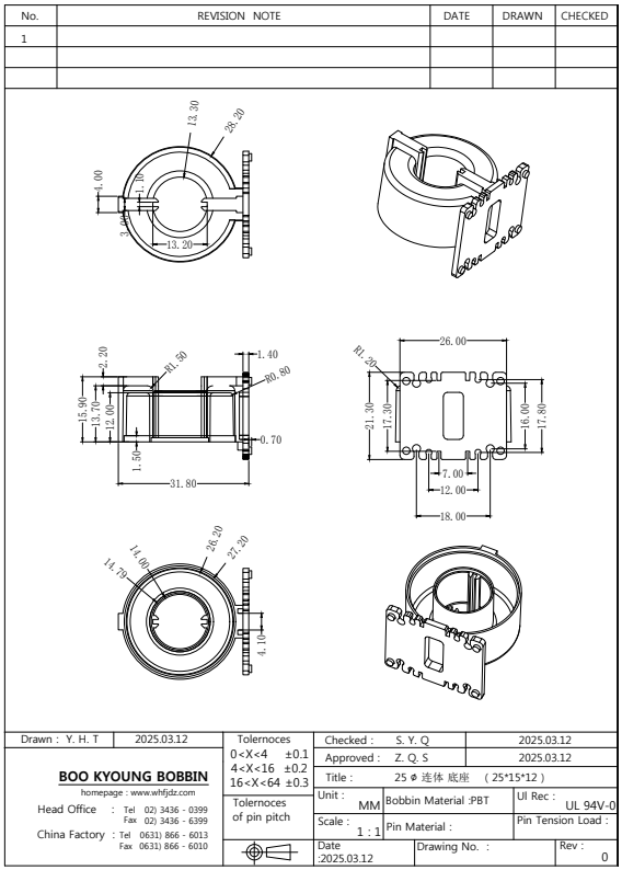 威海扶景电子有限公司位于威海市文登经济技术开发区天润路7-9号,是2006年8月29日成立的外商独资企业,公司注册资本肆拾柒万美元,经营期限长期。公司的经营范围是生产销售电子产品用塑料件、线路板、变压器等相关电子零部件,主要型号包括EE,ER,EI,EFD,PQ,SQ,UU,磁环等系列产品,主要使用材料有电木,PBT,PPS,PET,LCP,尼龙66等。
